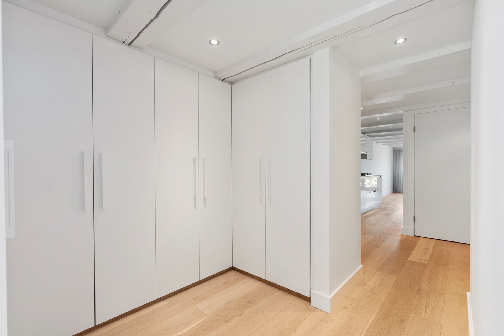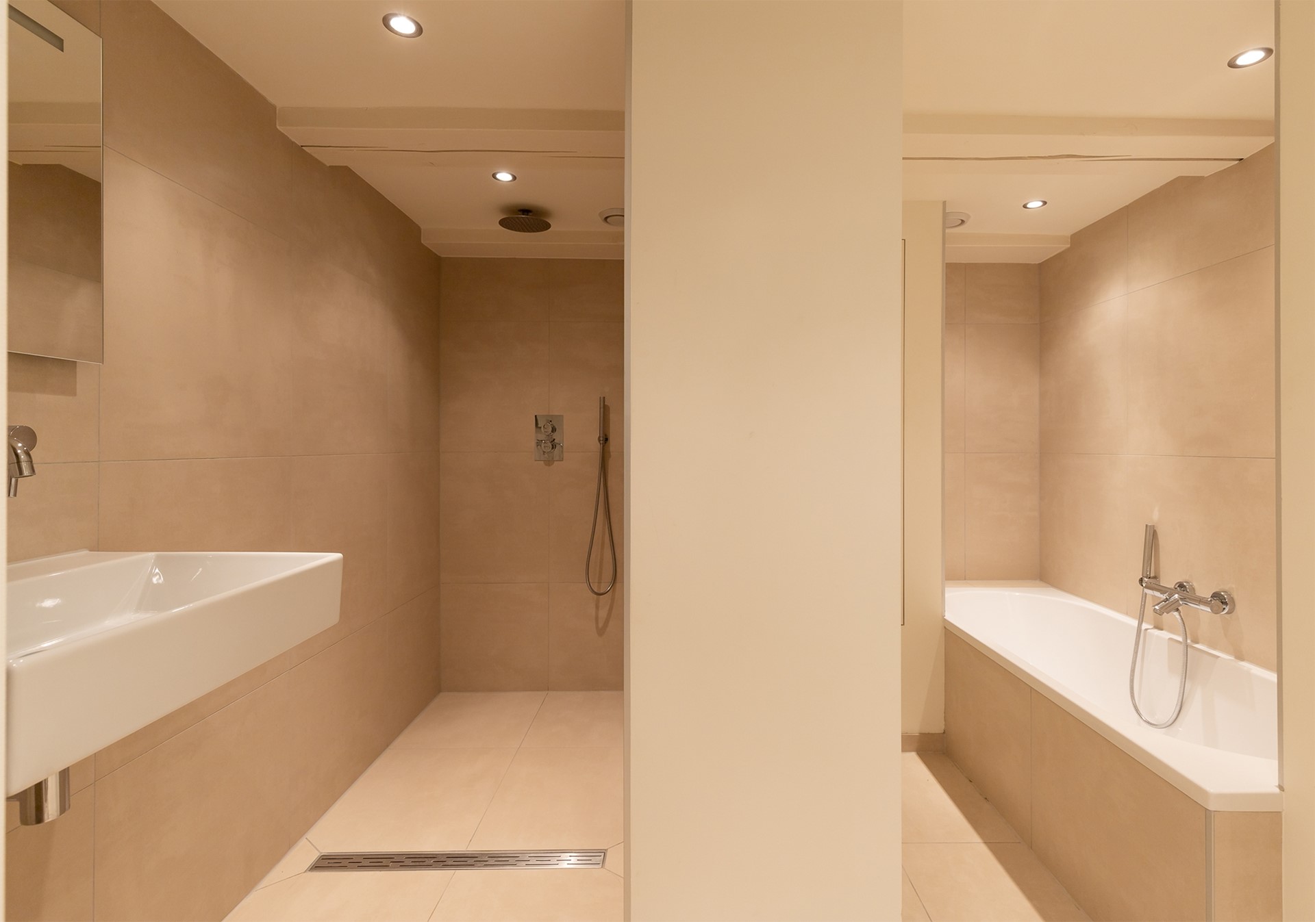 You reach the fourth floor via a well maintained staircase that is wide for Amsterdam standards. In the hallway you have many built in wardrobes and a separate storage with washing machine connection. The bathroom is very well equipped with toilet, a separate walk in shower and separate bathtub.