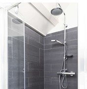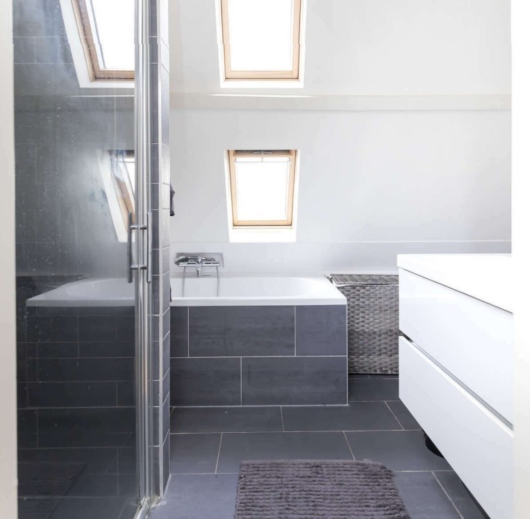 Fourth floor; The two bedrooms have built in wardrobes and the landing also has a customized cabinet so there is sufficient storage space. In the middle of the floor the bathroom is located, fitted with a walk in shower, second toilet, bath and large washbasin. Also on this floor is a mobile AC unit.