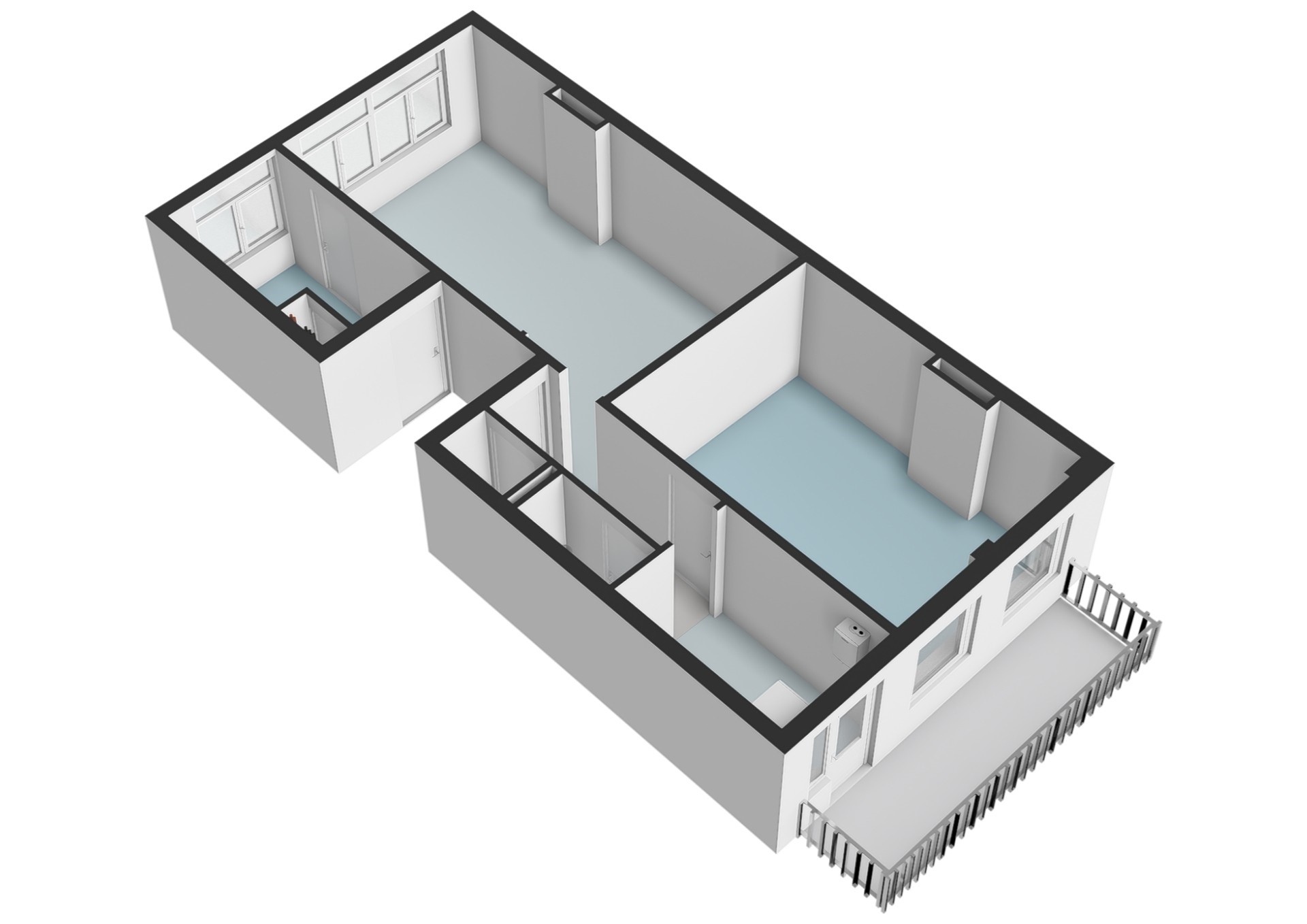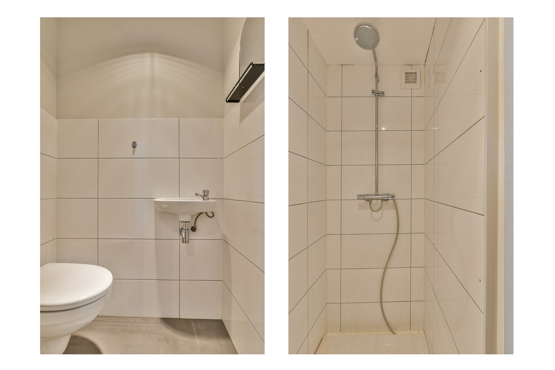 The bathroom is equipped with walk-in shower and washbasin. Separate toilet. Both are conveniently located in the middle of the apartment.